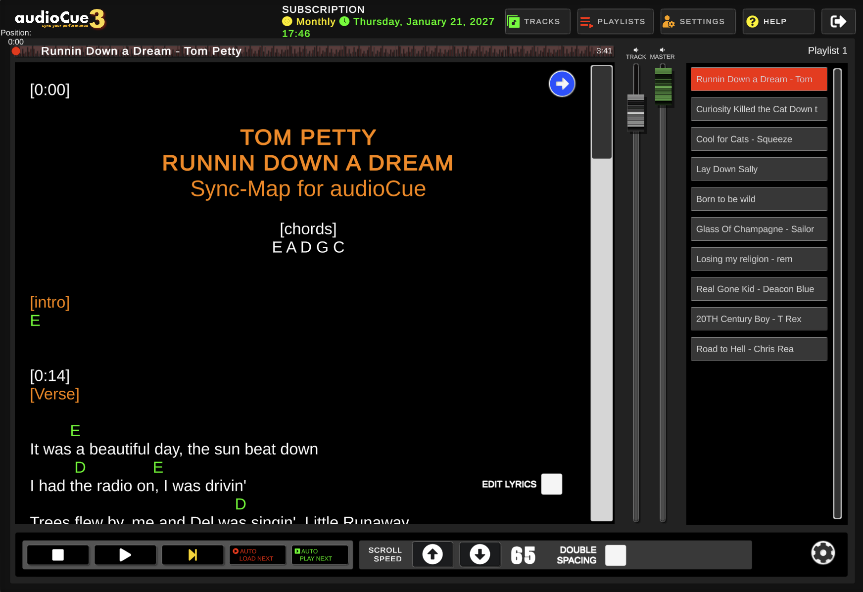 Used by solo musicians and bands across the world, audioCue is the only combined backing tracks player and lyrics prompter you will ever need.